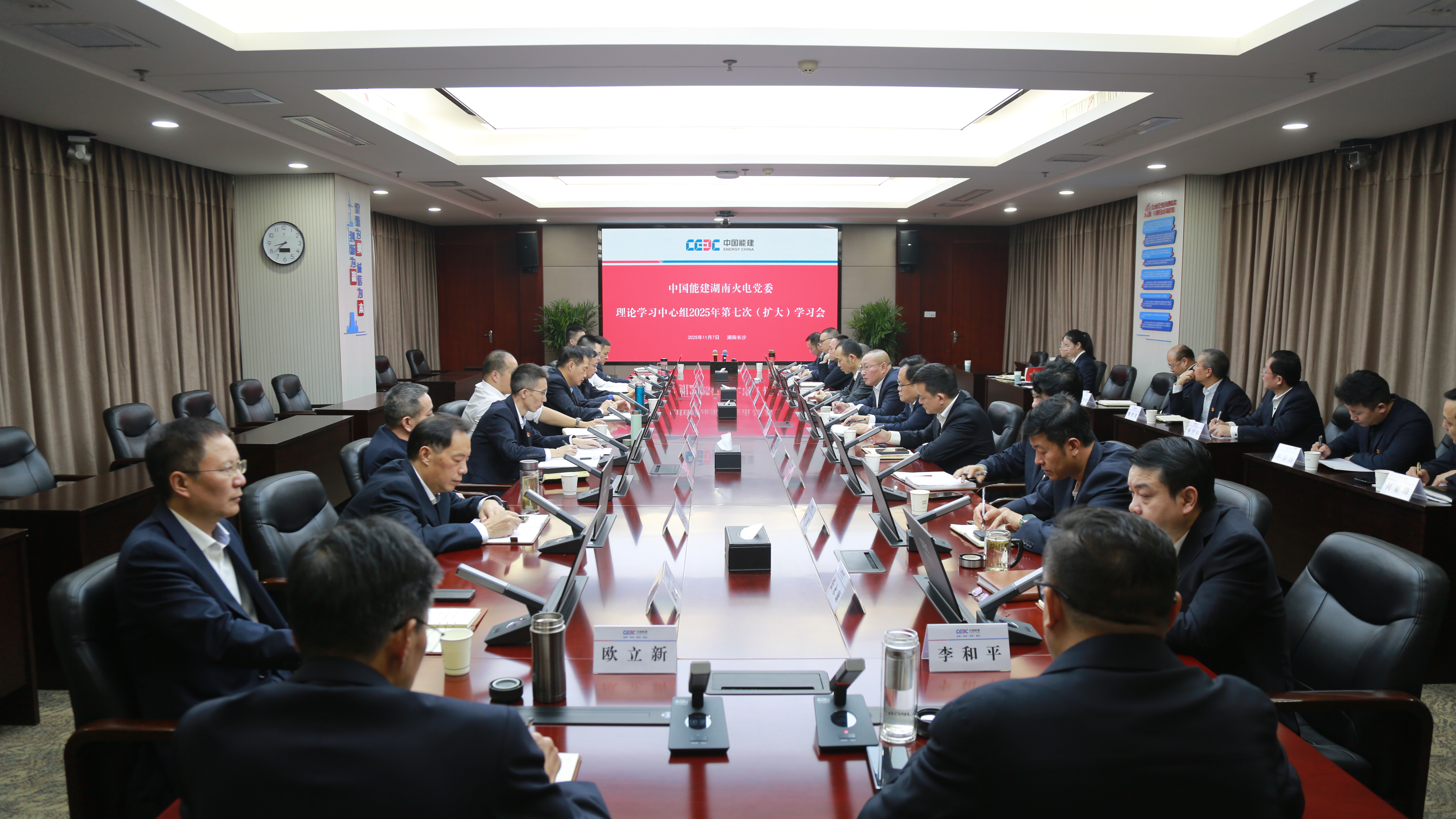 11月7日,中國能建湖南火電黨委召開理論學習中心組(擴大)學習會,傳達學習黨的二十屆四中全會精神,研究部署學習宣貫工作。